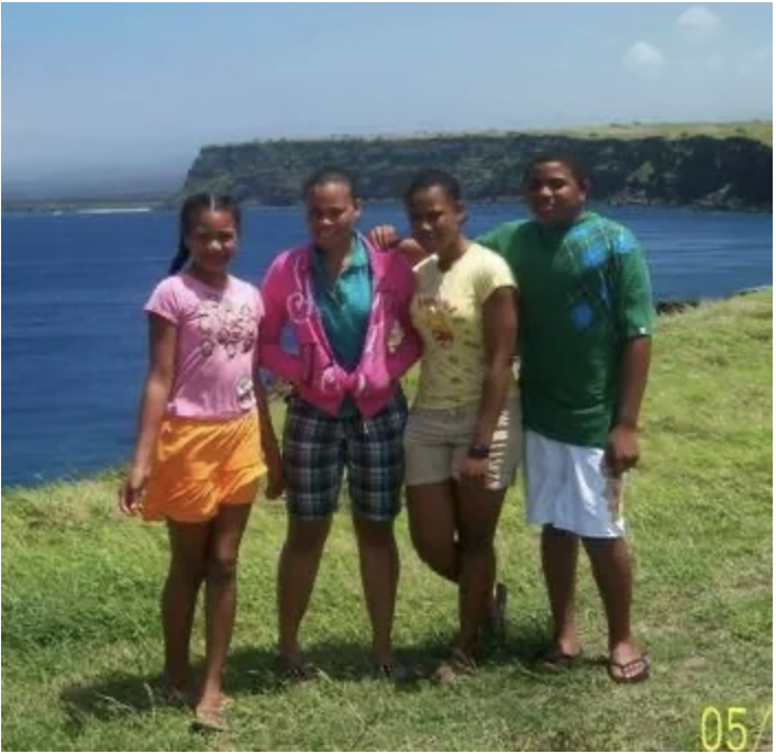 A picture of K and their 3 siblings all around the ages of 10–15.