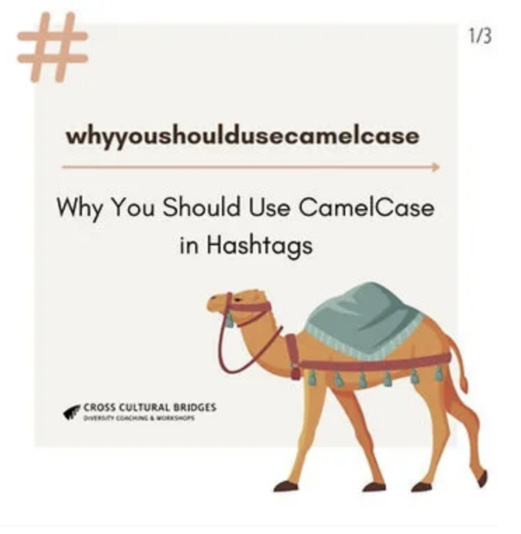 She explains that for people with dyslexia or other learning disabilities hashtags that are written in camelcase are easier to understand because the ending of each word is more clear and therefore easier to read. Moreover, Screen readers read every word out loud. If the word is structured by capitalized letters in between, the screen reader makes it sound more like an actual phrase instead of a fast sequence of words. Therefore using CamelCase is a great way to make your feed more accessible to your blind followers and people with vision impairment or low vision.