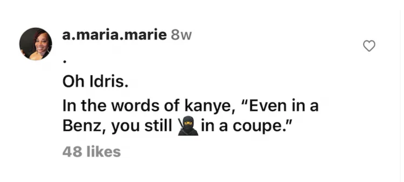 I saw many posts about this when the interview first dropped and it made me think about how Black Americans are considered less-than even to other Black people. Idris’ first career break was playing a Black American and similar roles shortly after. He boasted his American accent and his place in the Black American community.