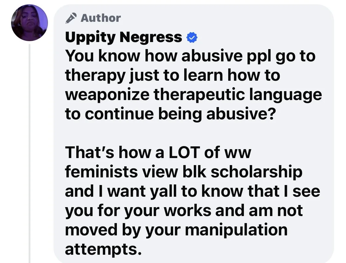 WW love a good flip and reverse. They will use anything they can from crocodile tears to quotes from Black leaders to place themselves back on that pedestal.