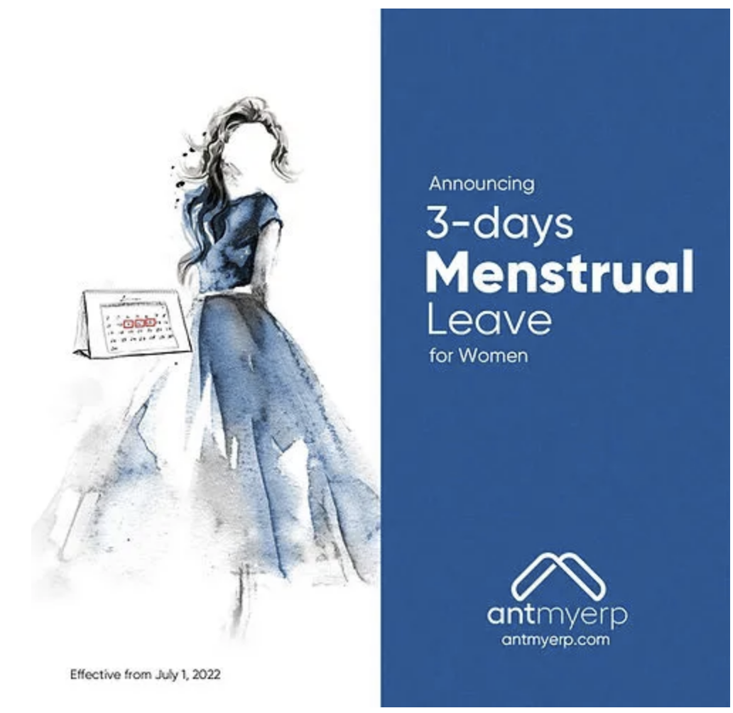Because of this initial conversation on “women’s bodies” more organizations are performatively creating policies to accommodate bodily functions they are unfamiliar with. The image above was posted to promote a new 3-days Menstrual Leave for Women. There’s a lot wrong with this at first glance: the time frame, imaging and the very idea that all menstruations are the same, but the one I’d like to focus on most is the “for Women.” As organizations continue to create new policies, I hope that it’ll get easier for us all to point out who’s being centered, left out and just plain ignored.