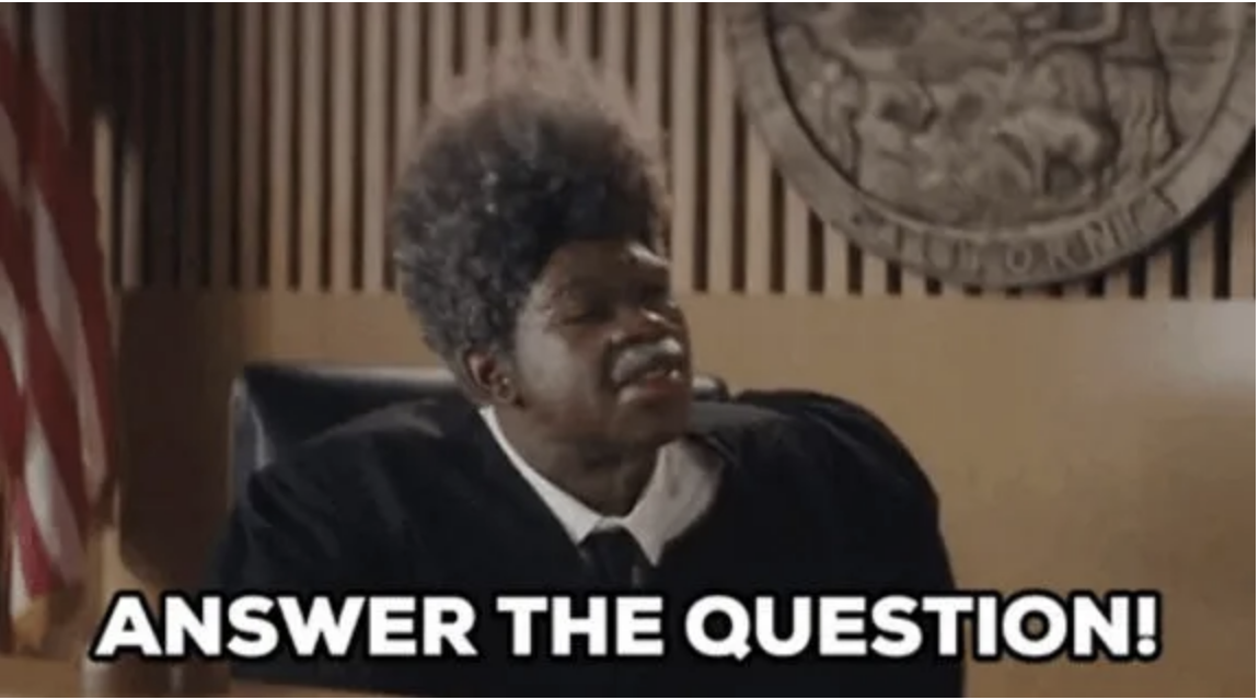 Lil Nas X dressed as a judge says “Answer The Question!” which is captioned in white lettering.