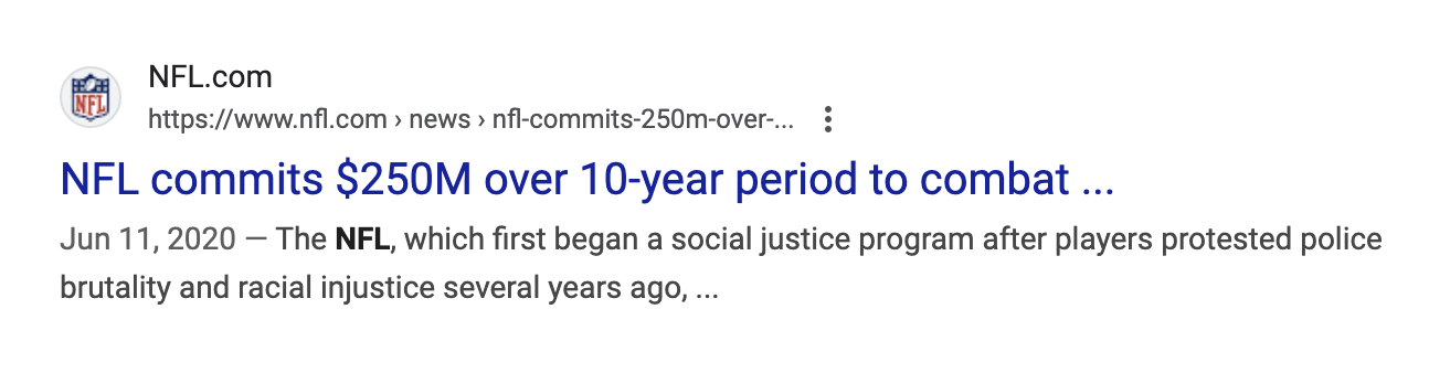 The NFL wouldn't even utter Black Lives Matter until it became inevitable and has still not given anything they owe to Colin Kaepernick. Also the lack of funding going in to preserving the livelihood of the players after their careers, is disgusting.